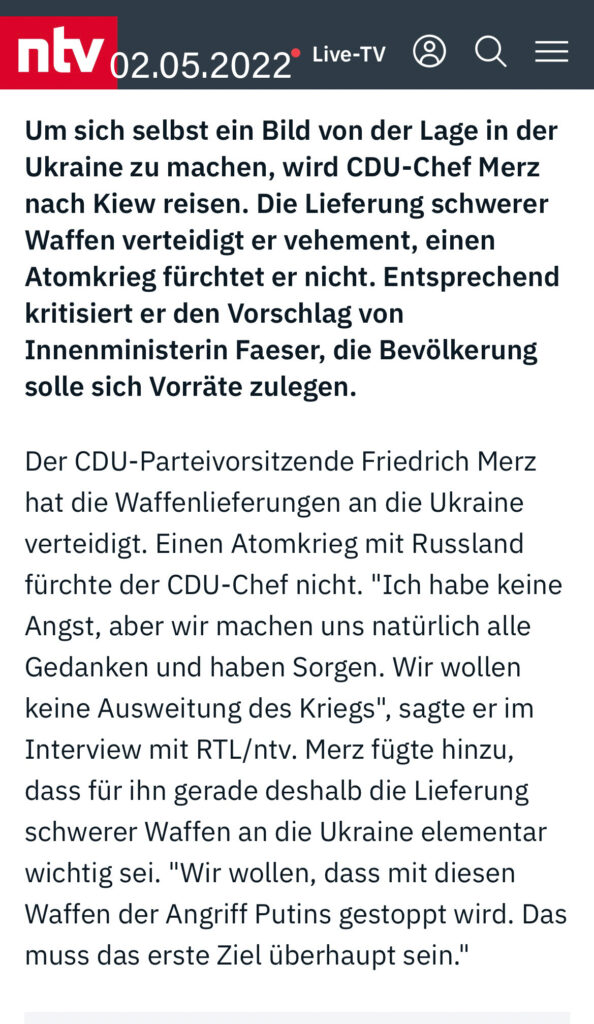 Und nicht zuletzt fürchtet er auch keinen Atomkrieg. Das ist ja sehr beruhigend.